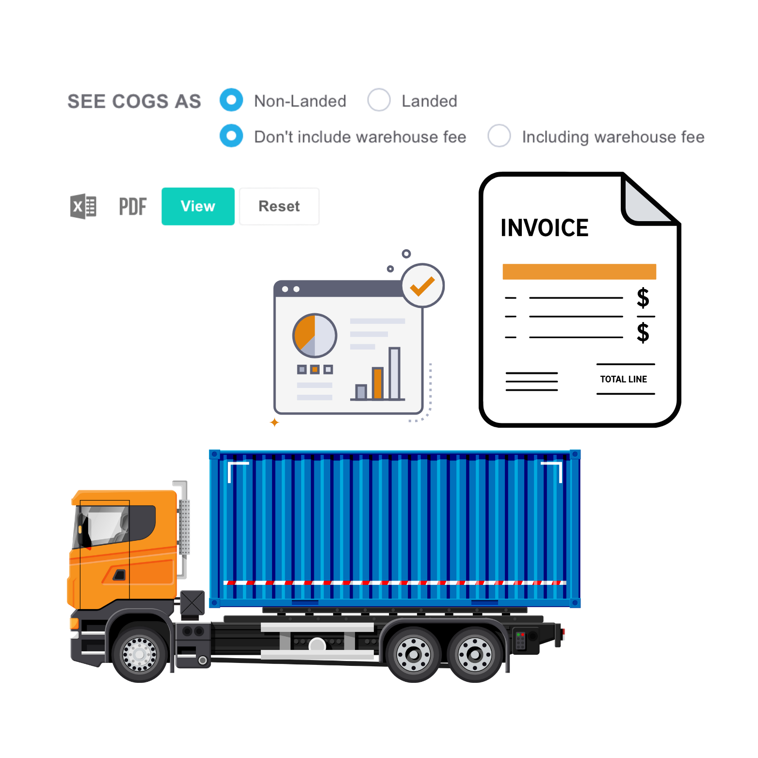 You can also view the reports with the landed cost and non-landed cost broken down.